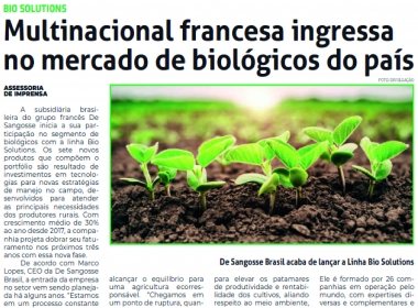Diário do Estado destaca os lançamentos da De Sangosse no mercado de biológicos