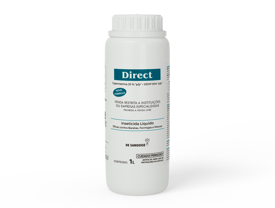 - DIRECT (Cipermetrina 25% CE + Diclorvós 30%) é uma mistura pronta de inseticidas com ação de choque e residual, indicado para controle de baratas, formigas e moscas.