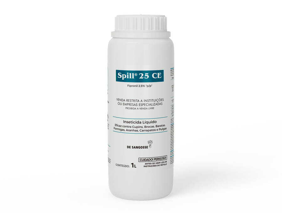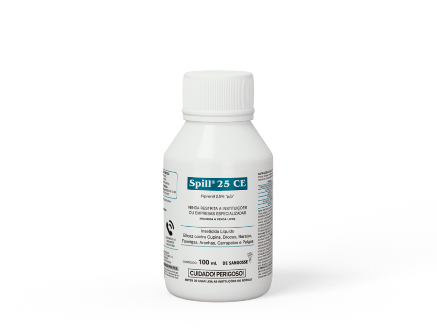 - SPILL 25 CE (Fipronil 2,5% CE) é um inseticida indicado para controle de baratas, formigas, cupins, brocas de madeira, aranhas, pulgas e carrapatos.