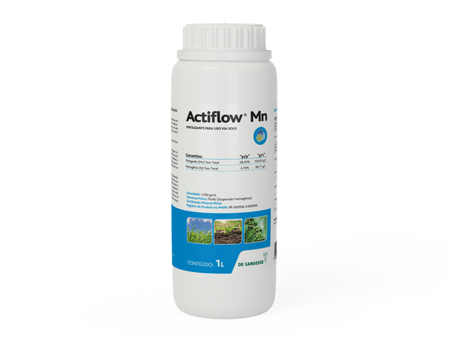 Actiflow Mn é um fertilizante mineral misto em suspensão concentrada para aplicação via solo, contendo Manganês e Nitrogênio. A tecnologia única e diferenciada de Actiflow Mn garante boa estabilidade da formulação com alta concentração dos nutrientes e possibilita o máximo de performance do produto com pequenas doses por área.