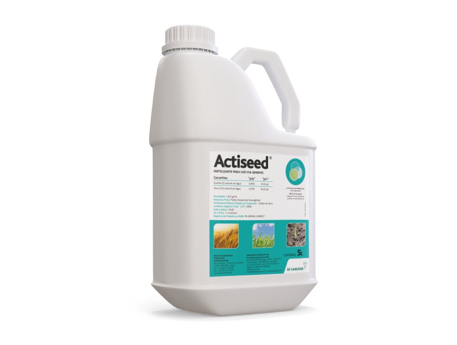 Actiseed é um fertilizante mineral simples, para tratamento de sementes, contendo Zinco e proteínas hidrolisadas de origem vegetal. A formulação diferenciada de Actiseed com Zinco associados a agentes orgânicos, possibilita rápida absorção do nutriente e promove o sistema radicular e o bom desenvolvimento inicial das plantas, potencializando germinação e vigor.
